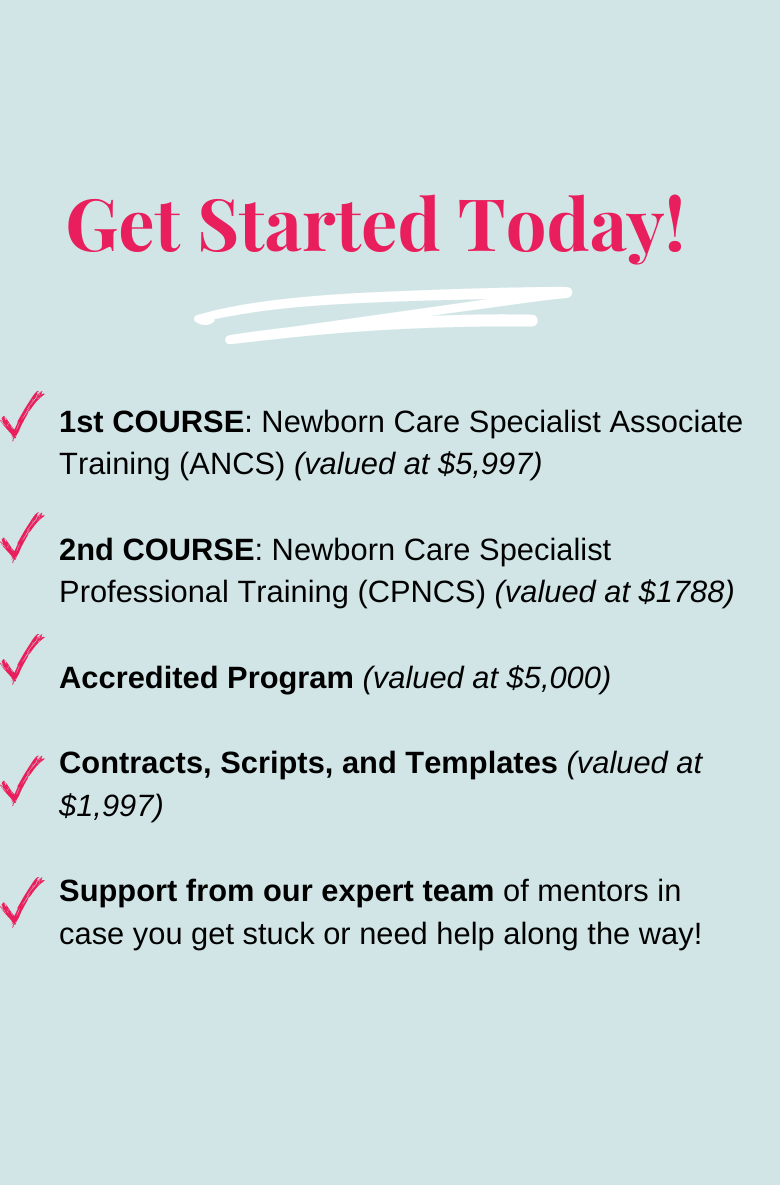 Mi visión es brindarte la confianza y el apoyo que necesitarás para convertirte en una Especialista en el Cuidado del Recien Nacido, un consultor del sueño y/o propietario de un negocio seguro.